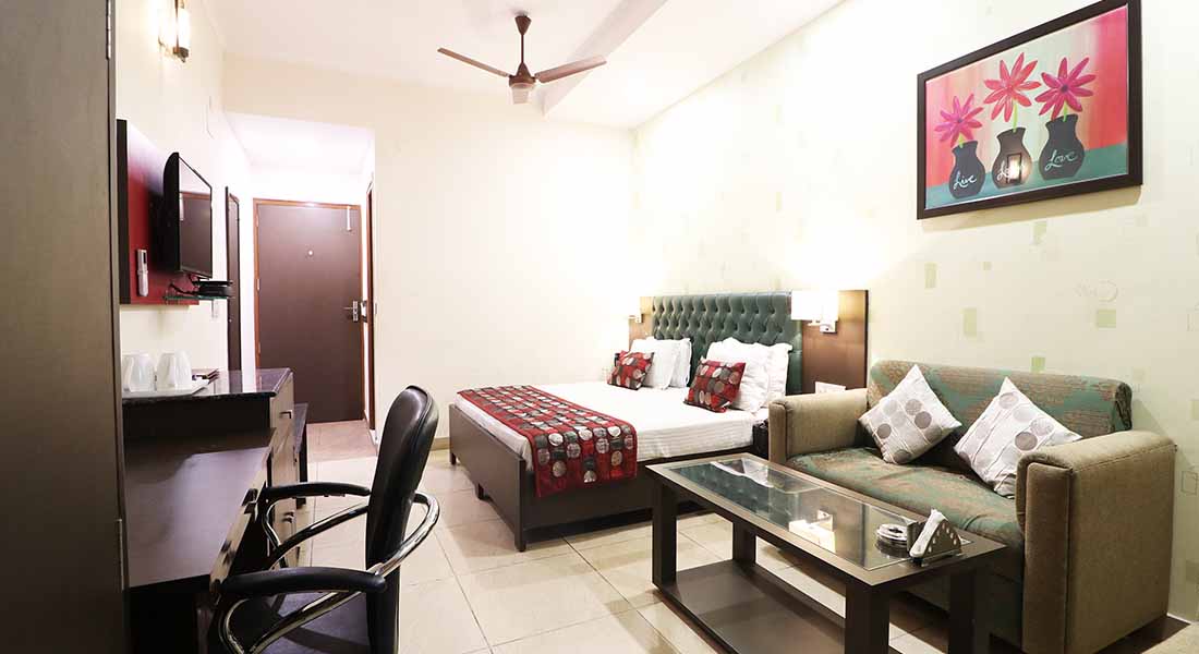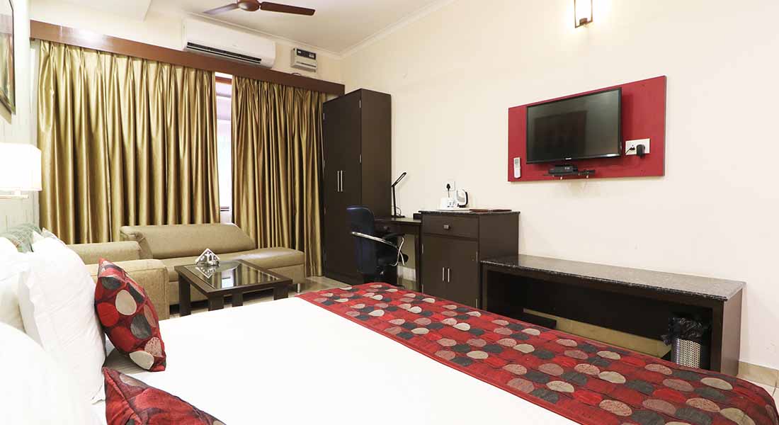 Designed specially to pamper its guests, the Super Deluxe rooms showcase a perfect blend of luxury in its accommodation with utmost security. The rooms bestow an elegant design combined with refined elegance and luxuriously appointed sleek accommodation. Tailor-made to meet the specific needs of the guests, the Super Deluxe Rooms offer accommodation that is more than just comfortable. From glorious touches in the room, with state- of -the art amenities and services to enhanced top-notch privacy – suite rooms ensure that the travelers feel pampered and secure.